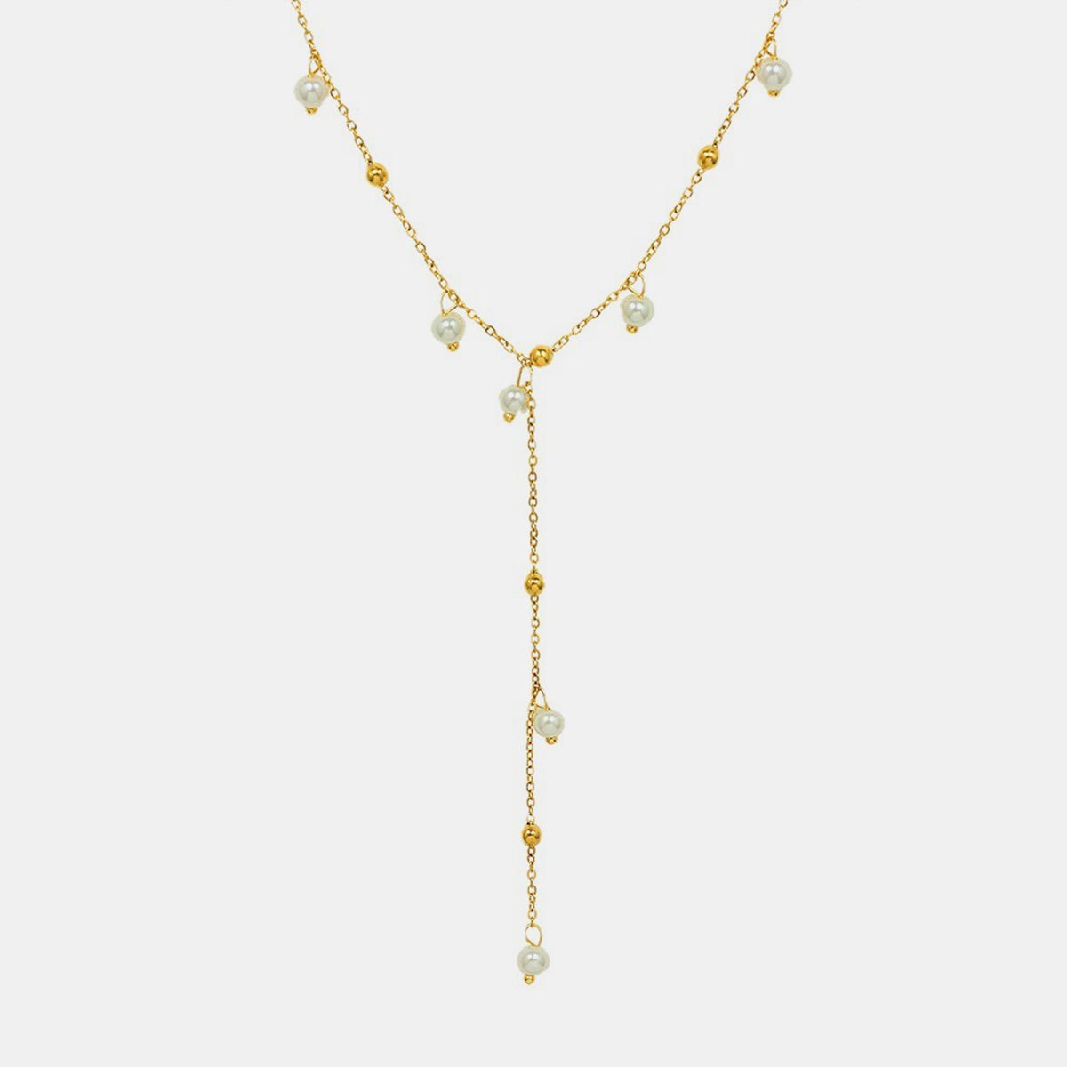 - Material: Synthetic pearl, 18K gold-plated, Titanium steel