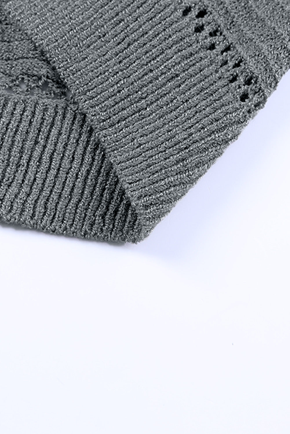Zip-Up Raglan Sleeve Openwork Hooded Cardigan